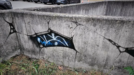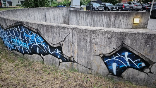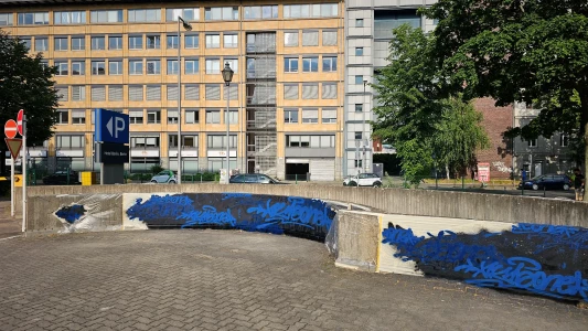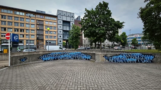 Hier ein paar Impressionen, vor allem von der Gestaltung der ehemaligen Außenwand der Tiefgarageneinfahrt von Akte One.