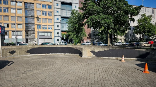 Here are a few impressions, especially of Akte One’s design of the former exterior wall of the underground parking garage entrance.